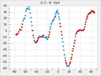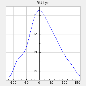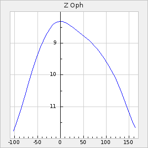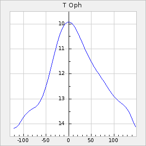 Mean period: 202.11, Mean epoch: 2440431.7 LC Avg Per ΔP: -0.18 ±0.02 (t:10.4, r2:0.333), ΔEpoch: -13.3 ΔP/C: -0.007 ±0 (t:17.6, r2:0.59) Mag at max: 9.3 ±0.4 (8.6-10.7) GCVS period: 202.29, GCVS epoch: 2440445 GCVS spectral type: M3e-M5e E/P (X=15) ε2: 12.8, 2a2: -0.5, r2: 0.985 E/P (X=5) ε2: 8, 2a2: 15.3, r2: 0.96 |