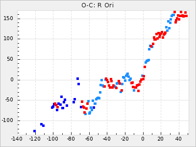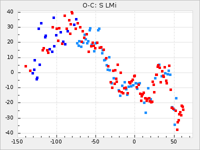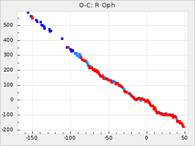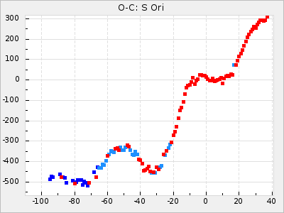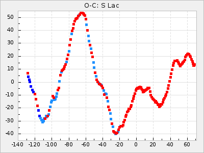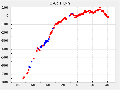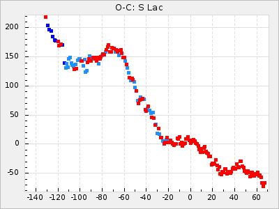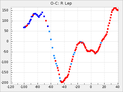 Mean period: 411.85, Mean epoch: 2443147.6 LC Avg Per ΔP: 5.85 ±0.32 (t:18.2, r2:0.765), ΔEpoch: -52.4 ΔP/C: -0.209 ±0.005 (t:40.5, r2:0.942) Mag at max: 9.5 ±0.5 (8.6-11.1) GCVS period: 406, GCVS epoch: 2443200 GCVS spectral type: C5,2e-C7,1e(NOe) E/P (X=15) ε2: 470.9, 2a2: -1070.5, r2: 0.959 E/P (X=5) ε2: 229.9, 2a2: -137.4, r2: 0.975 |