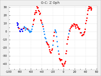 Mean period: 369.04, Mean epoch: 2441888.8 LC Avg Per ΔP: 0.91 ±0.06 (t:15.1, r2:0.634), ΔEpoch: 44.8 ΔP/C: 0.02 ±0.003 (t:6.6, r2:0.25) Mag at max: 8.4 ±0.4 (7.3-10.4) GCVS period: 368.13, GCVS epoch: 2441844 GCVS spectral type: M6e-M9e E/P (X=15) ε2: 78.8, 2a2: 1.9, r2: 0.978 E/P (X=5) ε2: 90.5, 2a2: -59.5, r2: 0.98 |