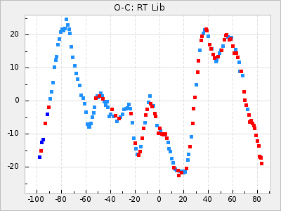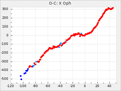 Mean period: 372.78, Mean epoch: 2445129.1 LC Avg Per ΔP: 0.59 ±0.06 (t:9.6, r2:0.394), ΔEpoch: 35.1 ΔP/C: 0.024 ±0.002 (t:12.2, r2:0.516) Mag at max: 7.4 ±0.5 (6.5-8.7) GCVS period: 372.19, GCVS epoch: 2445094 GCVS spectral type: M6.5e-M9.0e(Tc:) E/P (X=15) ε2: 50.4, 2a2: -51.1, r2: 0.991 E/P (X=5) ε2: 37.3, 2a2: -3.4, r2: 0.988 |