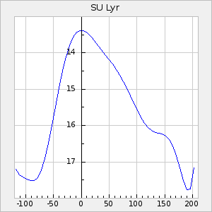 Mean period: 420.25, Mean epoch: 2440810.5 LC Avg Per ΔP: 2.46 ±0.14 (t:17.3, r2:0.898), ΔEpoch: 15.5 ΔP/C: -0.068 ±0.019 (t:3.6, r2:0.279) Mag at max: 13.6 ±0.7 (11.6-14.5) GCVS period: 417.79, GCVS epoch: 2440795 GCVS spectral type: E/P (X=15) ε2: 20.9, 2a2: 50.3, r2: 0.852 E/P (X=5) ε2: 30.3, 2a2: 21.2, r2: 0.935 |