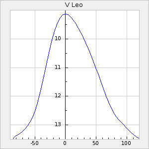 Mean period: 138.82, Mean epoch: 2443329.1 LC Avg Per ΔP: 0.2 ±0.01 (t:17.9, r2:0.522), ΔEpoch: 18.1 ΔP/C: 0.002 ±0 (t:10.2, r2:0.261) Mag at max: 9.3 ±0.4 (8.4-10.6) GCVS period: 138.62, GCVS epoch: 2443311 GCVS spectral type: M4e E/P (X=15) ε2: 8.3, 2a2: -2.5, r2: 0.985 E/P (X=5) ε2: 5.5, 2a2: 7.8, r2: 0.993 |