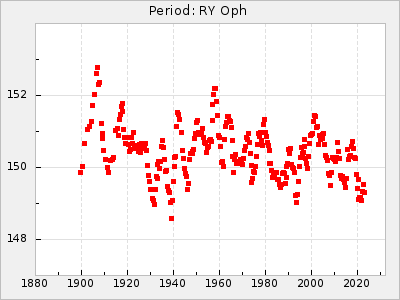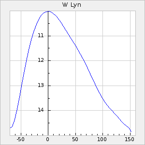 Mean period: 158.97, Mean epoch: 2440501.2 LC Avg Per ΔP: 0.67 ±0.02 (t:28.6, r2:0.862), ΔEpoch: 37.2 ΔP/C: 0.002 ±0.001 (t:4, r2:0.111) Mag at max: 11.1 ±0.3 (10.6-11.8) GCVS period: 158.3, GCVS epoch: 2440464 GCVS spectral type: E/P (X=15) ε2: 14.8, 2a2: 6, r2: 0.907 E/P (X=5) ε2: 16.6, 2a2: 6.5, r2: 0.945 |