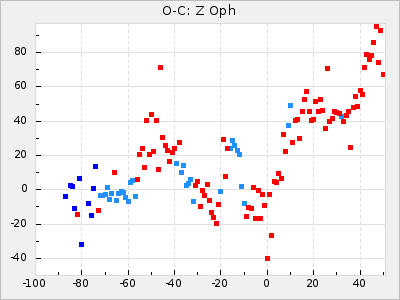 The colour for ΔP and ΔP/C is red for t: <5 and green for t: >= 5 to easier see where there is a high statistically significance. ΔP and ΔP/C is also clickable. ΔP shows a diagram with the original GCVS4 elements and ΔP/C shows the residuals when the parabolic part of the curve is removed.