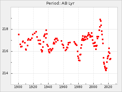Mean period: 216.47, Mean epoch: 2441804.3 LC Avg Per ΔP: 0.21 ±0.02 (t:11.4, r2:0.393), ΔEpoch: 3.3 ΔP/C: 0.006 ±0 (t:12.8, r2:0.45) Mag at max: 9.1 ±0.5 (7.5-11.1) GCVS period: 216.26, GCVS epoch: 2441801 GCVS spectral type: M2e-M4(II)e E/P (X=15) ε2: 8.1, 2a2: 12.3, r2: 0.979 E/P (X=5) ε2: 4.4, 2a2: 25.4, r2: 0.903 |