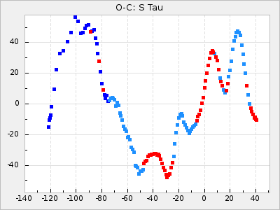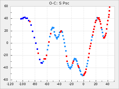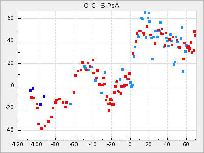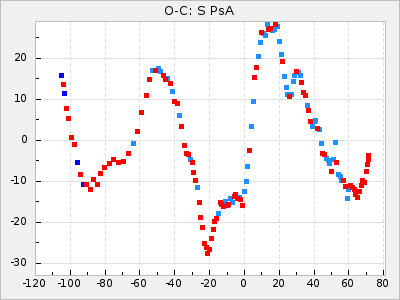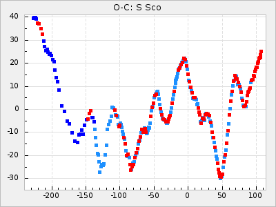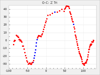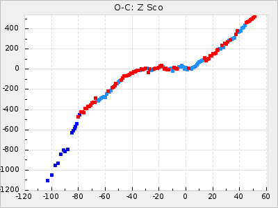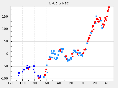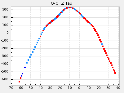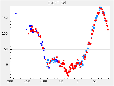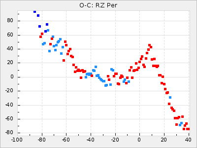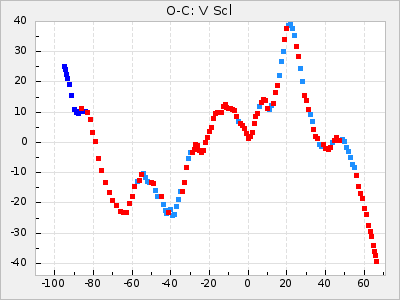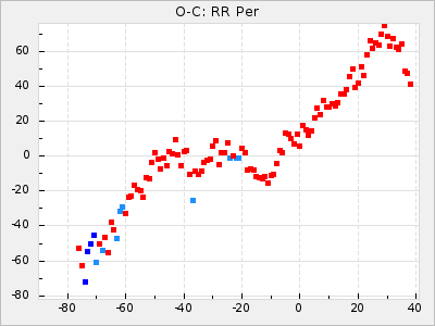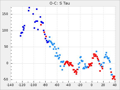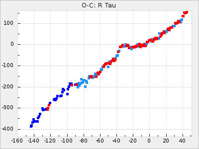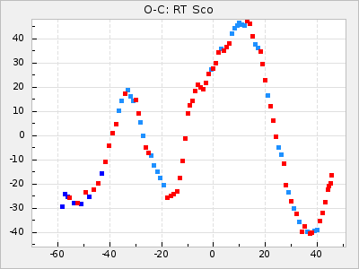 Mean period: 475.09, Mean epoch: 2443163.7 LC Avg Per ΔP: 8.89 ±1.03 (t:8.6, r2:0.443), ΔEpoch: -272.3 ΔP/C: -0.737 ±0.007 (t:105.9, r2:0.992) Mag at max: 10.5 ±0.5 (9.2-12.2) GCVS period: 466.2, GCVS epoch: 2443436 GCVS spectral type: S7.5,1e(M7e) E/P (X=15) ε2: 4165.5, 2a2: -11002.3, r2: 0.959 E/P (X=5) ε2: 1750.2, 2a2: -1926.7, r2: 0.971 |