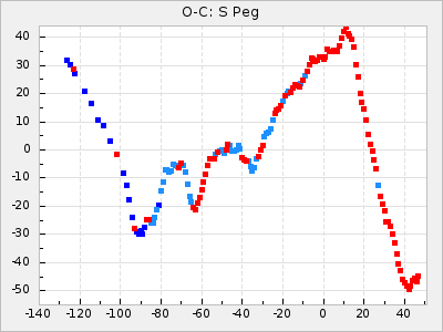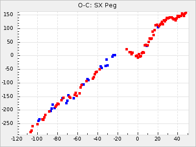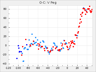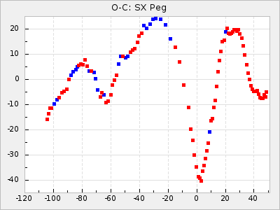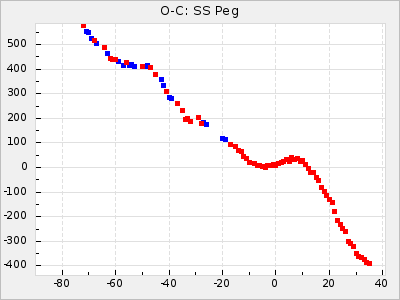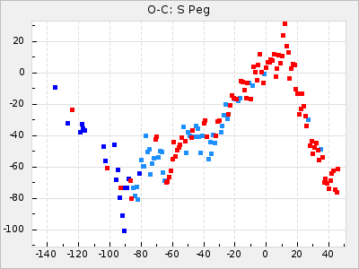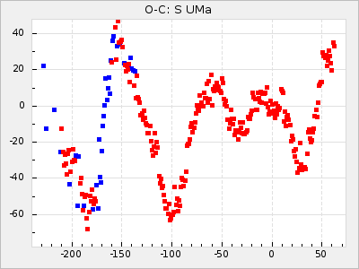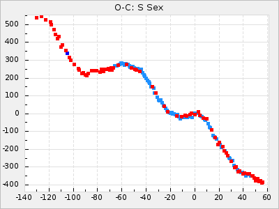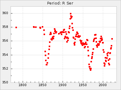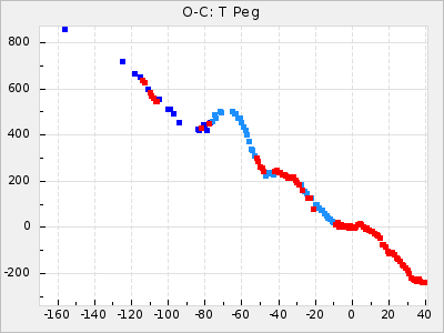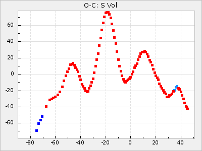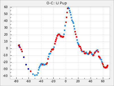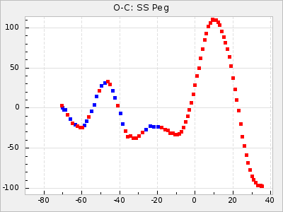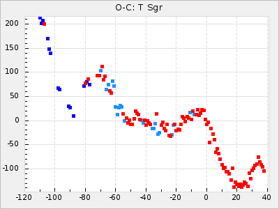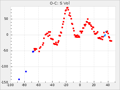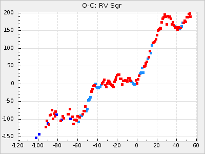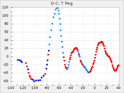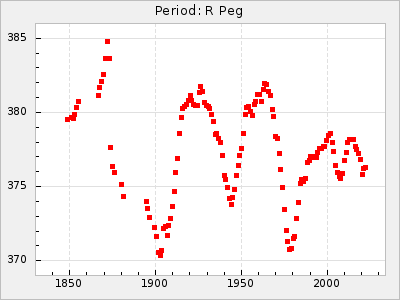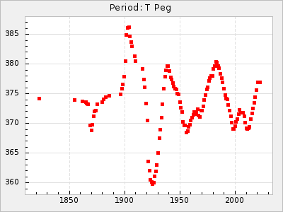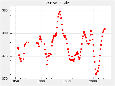 Mean period: 366.57, Mean epoch: 2439911.8 LC Avg Per ΔP: -4.18 ±0.2 (t:20.9, r2:0.794), ΔEpoch: -68.2 ΔP/C: -0.053 ±0.01 (t:5.3, r2:0.198) Mag at max: 8.7 ±0.4 (7.5-9.6) GCVS period: 370.75, GCVS epoch: 2439980 GCVS spectral type: M4/6e-M7II-IIIe E/P (X=15) ε2: 470.4, 2a2: -1084.2, r2: 0.975 E/P (X=5) ε2: 226.9, 2a2: -208.2, r2: 0.975 |