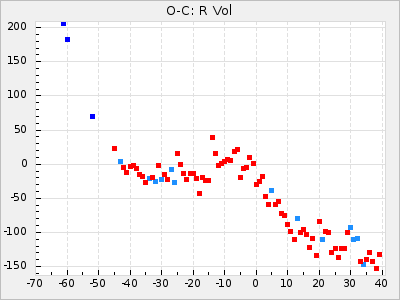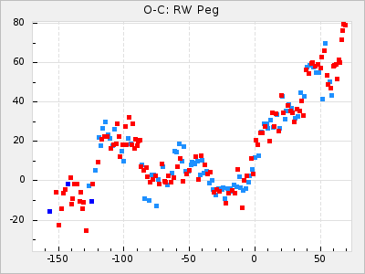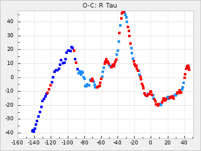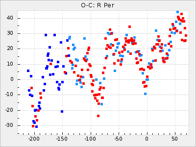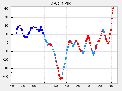 Mean period: 452.09, Mean epoch: 2439303.9 LC Avg Per ΔP: 1.68 ±0.12 (t:14.2, r2:0.687), ΔEpoch: 53.9 ΔP/C: 0.037 ±0.007 (t:5.3, r2:0.234) Mag at max: 9.4 ±0.7 (8.5-11.2) GCVS period: 450.41, GCVS epoch: 2439250 GCVS spectral type: M4e-M9(Se) E/P (X=15) ε2: 145.2, 2a2: -184.6, r2: 0.991 E/P (X=5) ε2: 90.1, 2a2: -17.4, r2: 0.916 |