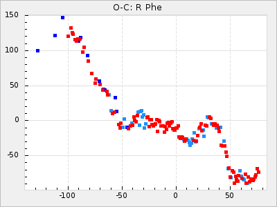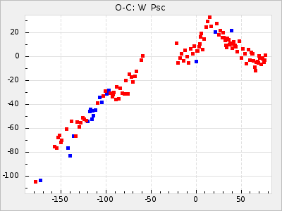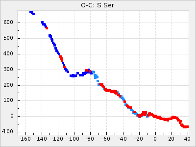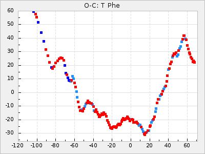 The colour for ΔP and ΔP/C is red for t: <5 and green for t: >= 5 to easier see where there is a high statistically significance. ΔP and ΔP/C is also clickable. ΔP shows a diagram with the original GCVS4 elements and ΔP/C shows the residuals when the parabolic part of the curve is removed.