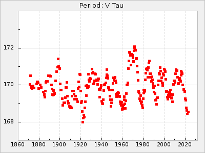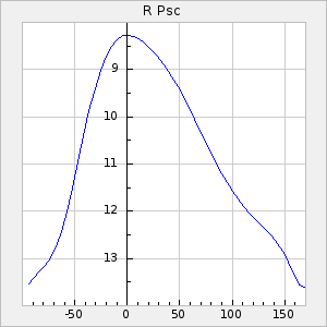 Mean period: 180.57, Mean epoch: 2442807.7 LC Avg Per ΔP: 0.17 ±0.03 (t:5.2, r2:0.162), ΔEpoch: 48.7 ΔP/C: 0.011 ±0 (t:28.6, r2:0.856) Mag at max: 10.3 ±0.3 (9.7-11.0) GCVS period: 180.4, GCVS epoch: 2442759 GCVS spectral type: M0 E/P (X=15) ε2: 20.5, 2a2: 12.3, r2: 0.87 E/P (X=5) ε2: 19.1, 2a2: 17, r2: 0.865 |