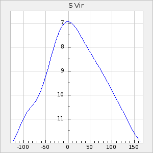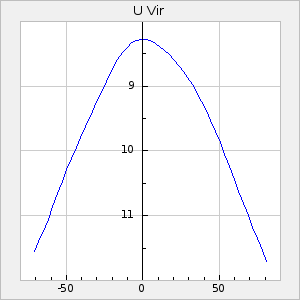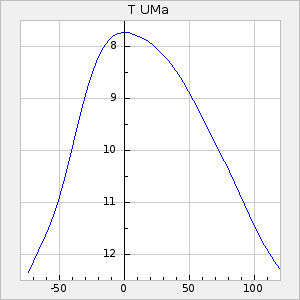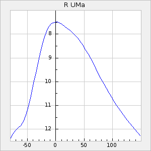Mean period: 260.34, Mean epoch: 2444899.2 LC Avg Per ΔP: -4.46 ±0.04 (t:111.2, r2:0.987), ΔEpoch: -14.8 ΔP/C: 0.013 ±0.001 (t:9.4, r2:0.345) Mag at max: 8.7 ±0.4 (7.8-9.8) GCVS period: 264.8, GCVS epoch: 2444914 GCVS spectral type: M3e-M7e E/P (X=15) ε2: 46.1, 2a2: -90.4, r2: 0.969 E/P (X=5) ε2: 22.1, 2a2: -1, r2: 0.984 |