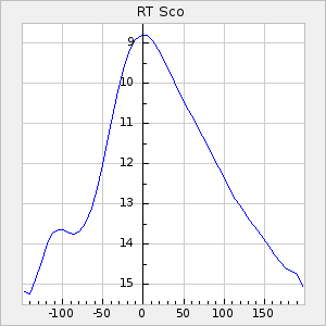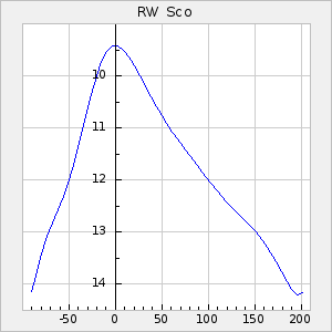 Mean period: 199.52, Mean epoch: 2439094.0 LC Avg Per ΔP: -0.34 ±0.02 (t:16.2, r2:0.565), ΔEpoch: -41 ΔP/C: -0.005 ±0 (t:13.1, r2:0.46) Mag at max: 11 ±0.3 (10.4-12.5) GCVS period: 199.86, GCVS epoch: 2439135 GCVS spectral type: M2e E/P (X=15) ε2: 7.1, 2a2: 14.8, r2: 0.93 E/P (X=5) ε2: 4.6, 2a2: 26, r2: 0.815 |