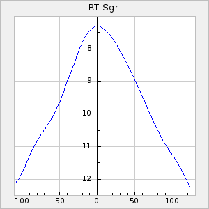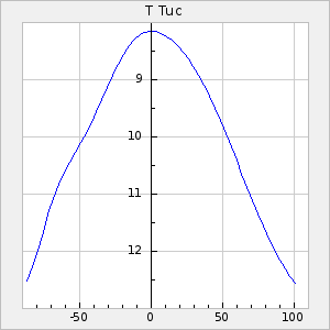Mean period: 302.88, Mean epoch: 2444532.3 LC Avg Per ΔP: 0.53 ±0.04 (t:13.7, r2:0.556), ΔEpoch: 26.3 ΔP/C: 0.017 ±0.001 (t:13.2, r2:0.54) Mag at max: 8.8 ±0.4 (7.0-10.2) GCVS period: 302.35, GCVS epoch: 2444506 GCVS spectral type: M3e-M7e E/P (X=15) ε2: 13.4, 2a2: 22.3, r2: 0.988 E/P (X=5) ε2: 14, 2a2: 23, r2: 0.957 |