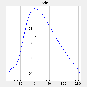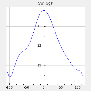 Mean period: 221.15, Mean epoch: 2439163.2 LC Avg Per ΔP: -0.12 ±0.01 (t:9, r2:0.319), ΔEpoch: 1.2 ΔP/C: -0.003 ±0 (t:8.9, r2:0.314) Mag at max: 11.9 ±0.5 (10.5-13.5) GCVS period: 221.27, GCVS epoch: 2439162 GCVS spectral type: E/P (X=15) ε2: 6.8, 2a2: 22.9, r2: 0.98 E/P (X=5) ε2: 8.3, 2a2: 15.8, r2: 0.984 |