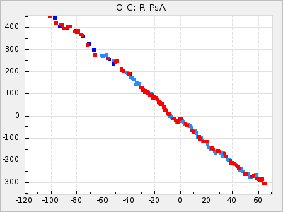 Mean period: 331.62, Mean epoch: 2441463.0 LC Avg Per ΔP: -2.33 ±0.05 (t:42.9, r2:0.953), ΔEpoch: 8 ΔP/C: 0.017 ±0.002 (t:9.2, r2:0.486) Mag at max: 8.8 ±0.4 (8.1-9.6) GCVS period: 333.95, GCVS epoch: 2441455 GCVS spectral type: M5e-M6e E/P (X=15) ε2: 41, 2a2: -39.2, r2: 0.949 E/P (X=5) ε2: 24, 2a2: 22.9, r2: 0.97 |
