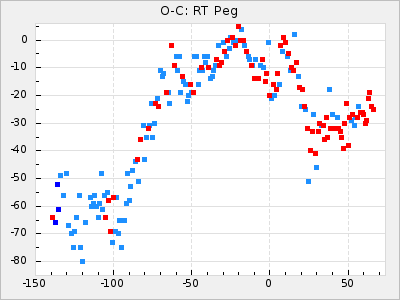 Mean period: 250.62, Mean epoch: 2441951.4 LC Avg Per ΔP: 0.32 ±0.03 (t:10.3, r2:0.383), ΔEpoch: -22.6 ΔP/C: -0.001 ±0.001 (t:0.9, r2:0.005) Mag at max: 8.1 ±0.3 (6.9-9.1) GCVS period: 250.3, GCVS epoch: 2441974 GCVS spectral type: M3IIe-M6IIe E/P (X=15) ε2: 47.1, 2a2: -87.9, r2: 0.969 E/P (X=5) ε2: 25.3, 2a2: -3, r2: 0.998 |