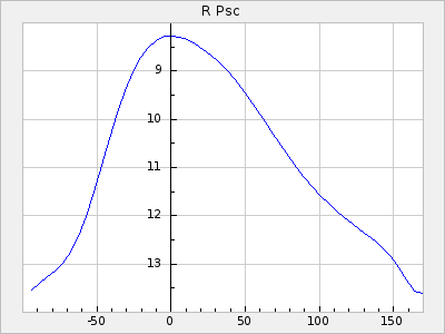 Mean period: 180.82, Mean epoch: 2436003.0 LC Avg Per ΔP: 1.82 ±0.02 (t:109.6, r2:0.988), ΔEpoch: -3 ΔP/C: -0.004 ±0 (t:17, r2:0.661) Mag at max: 10.2 ±0.2 (9.9-10.9) GCVS period: 179, GCVS epoch: 2436006 GCVS spectral type: Me E/P (X=15) ε2: 9.7, 2a2: 9.7, r2: 0.913 E/P (X=5) ε2: 6.5, 2a2: 23.9, r2: 0.828 |