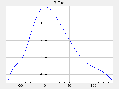 Mean period: 365.44, Mean epoch: 2442387.7 LC Avg Per ΔP: 2.87 ±0.06 (t:51.6, r2:0.953), ΔEpoch: 42.7 ΔP/C: 0.003 ±0.003 (t:1.1, r2:0.008) Mag at max: 6.7 ±0.4 (6.0-8.1) GCVS period: 362.57, GCVS epoch: 2442345 GCVS spectral type: M3e-M9e(Tc) E/P (X=15) ε2: 83.6, 2a2: -155.9, r2: 0.984 E/P (X=5) ε2: 44.1, 2a2: -20.8, r2: 0.976 |