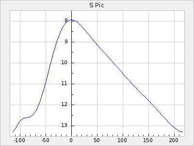 Mean period: 447.91, Mean epoch: 2439235.5 LC Avg Per ΔP: -1.13 ±0.1 (t:11.6, r2:0.584), ΔEpoch: -16.5 ΔP/C: -0.042 ±0.005 (t:7.7, r2:0.385) Mag at max: 8.9 ±0.8 (7.0-10.8) GCVS period: 449.04, GCVS epoch: 2439252 GCVS spectral type: S7,2(M6e-M7e) E/P (X=15) ε2: 81.9, 2a2: -63.2, r2: 0.985 E/P (X=5) ε2: 51.3, 2a2: 43.1, r2: 0.978 |