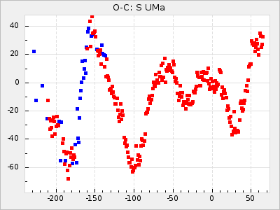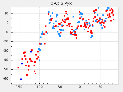 Mean period: 475.09, Mean epoch: 2443163.7 LC Avg Per ΔP: 8.89 ±1.03 (t:8.6, r2:0.443), ΔEpoch: -272.3 ΔP/C: -0.737 ±0.007 (t:105.9, r2:0.992) Mag at max: 10.5 ±0.5 (9.2-12.2) GCVS period: 466.2, GCVS epoch: 2443436 GCVS spectral type: S7.5,1e(M7e) E/P (X=15) ε2: 4165.5, 2a2: -11002.3, r2: 0.959 E/P (X=5) ε2: 1750.2, 2a2: -1926.7, r2: 0.971 |