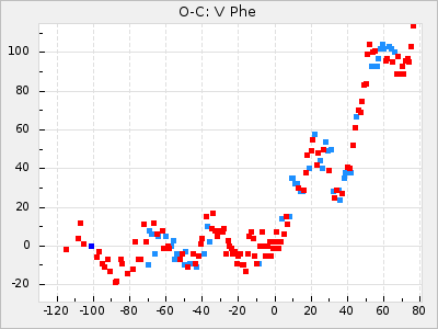The colour for ΔP and ΔP/C is red for t: <5 and green for t: >= 5 to easier see where there is a high statistically significance. ΔP and ΔP/C is also clickable. ΔP shows a diagram with the original GCVS4 elements and ΔP/C shows the residuals when the parabolic part of the curve is removed.