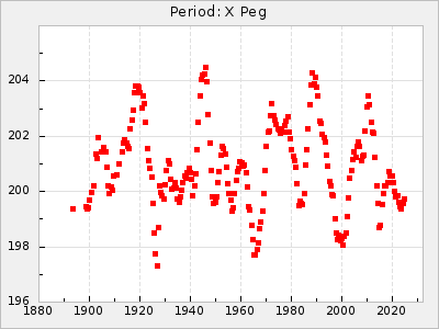 Mean period: 278.31, Mean epoch: 2441707.2 LC Avg Per ΔP: -0.15 ±0.03 (t:4.2, r2:0.093), ΔEpoch: 4.2 ΔP/C: 0.01 ±0.001 (t:10.4, r2:0.381) Mag at max: 7.7 ±0.5 (6.6-9.4) GCVS period: 278.46, GCVS epoch: 2441703 GCVS spectral type: M4e-M7.5e E/P (X=15) ε2: 23, 2a2: -20.1, r2: 0.98 E/P (X=5) ε2: 13.1, 2a2: 16.4, r2: 0.985 |