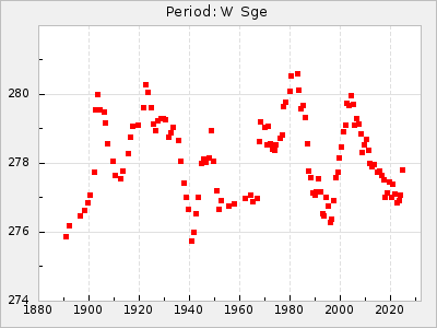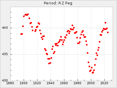 Mean period: 268.31, Mean epoch: 2439474.8 LC Avg Per ΔP: -0.95 ±0.04 (t:26.5, r2:0.814), ΔEpoch: -11.2 ΔP/C: 0.006 ±0.001 (t:4.4, r2:0.106) Mag at max: 8.2 ±0.4 (7.3-9.4) GCVS period: 269.26, GCVS epoch: 2439486 GCVS spectral type: M2(II)e-M4(III)e E/P (X=15) ε2: 29.8, 2a2: -34.6, r2: 0.966 E/P (X=5) ε2: 17.5, 2a2: 14.9, r2: 0.996 |