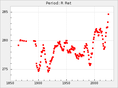 Mean period: 240.29, Mean epoch: 2441902.7 LC Avg Per ΔP: -0.2 ±0.02 (t:9.8, r2:0.338), ΔEpoch: 2.7 ΔP/C: 0.006 ±0.001 (t:9.7, r2:0.335) Mag at max: 7.3 ±0.4 (6.4-9.5) GCVS period: 240.49, GCVS epoch: 2441900 GCVS spectral type: M3e-M6e E/P (X=15) ε2: 10.6, 2a2: 5, r2: 0.99 E/P (X=5) ε2: 7.9, 2a2: 13.8, r2: 0.977 |